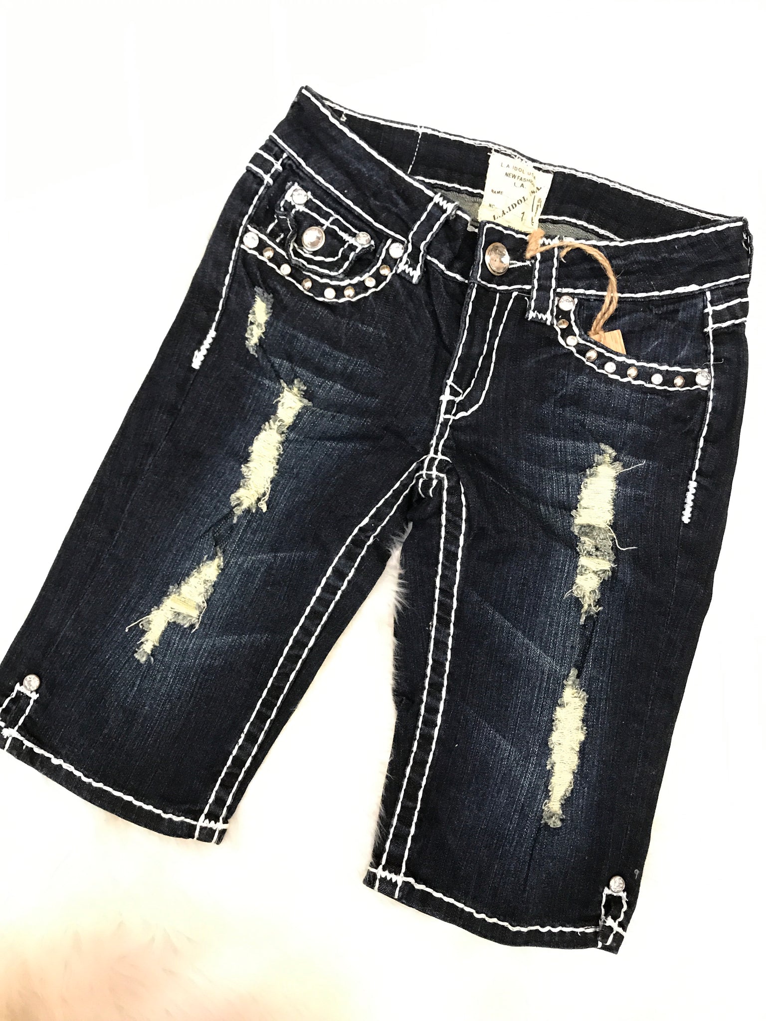 L.A. IDOL DISTRESSED SHINING CROSS BERMUDA SHORTS