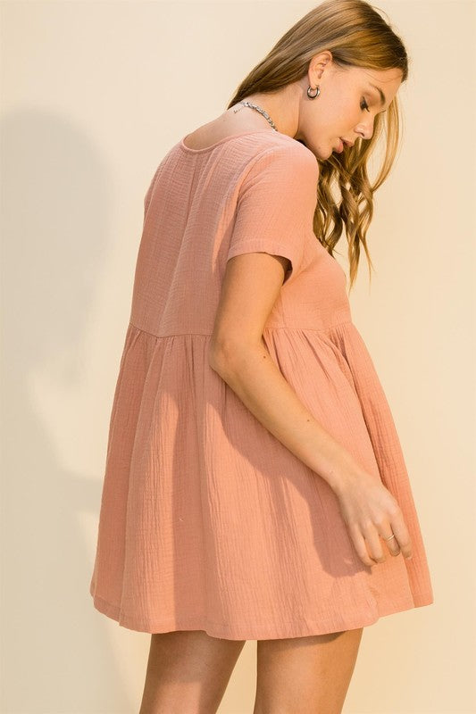 - SHORT SLEEVE Babydoll Tunic - 100% COTTON - IMPORTED. DESIGNED BY USA
