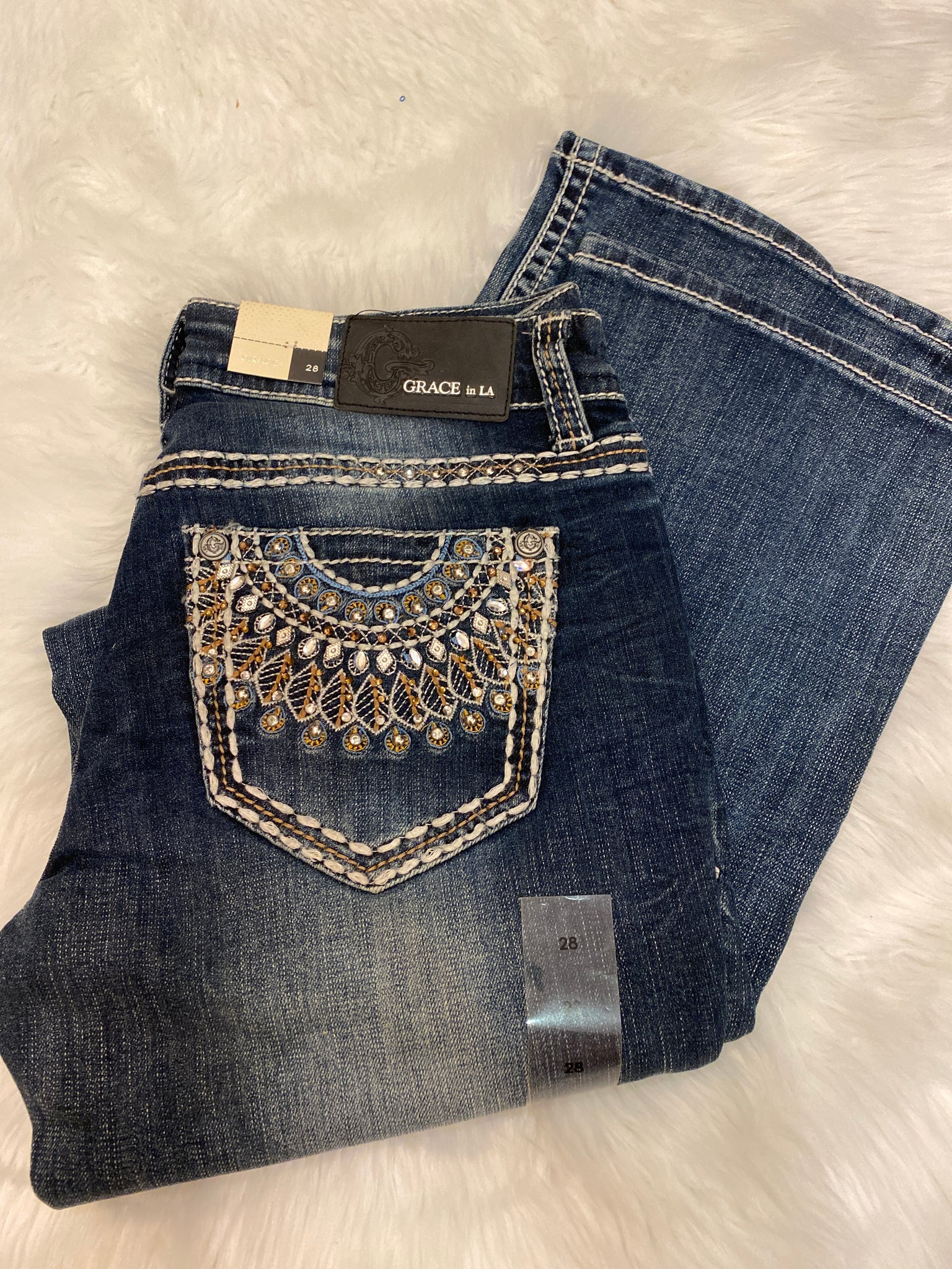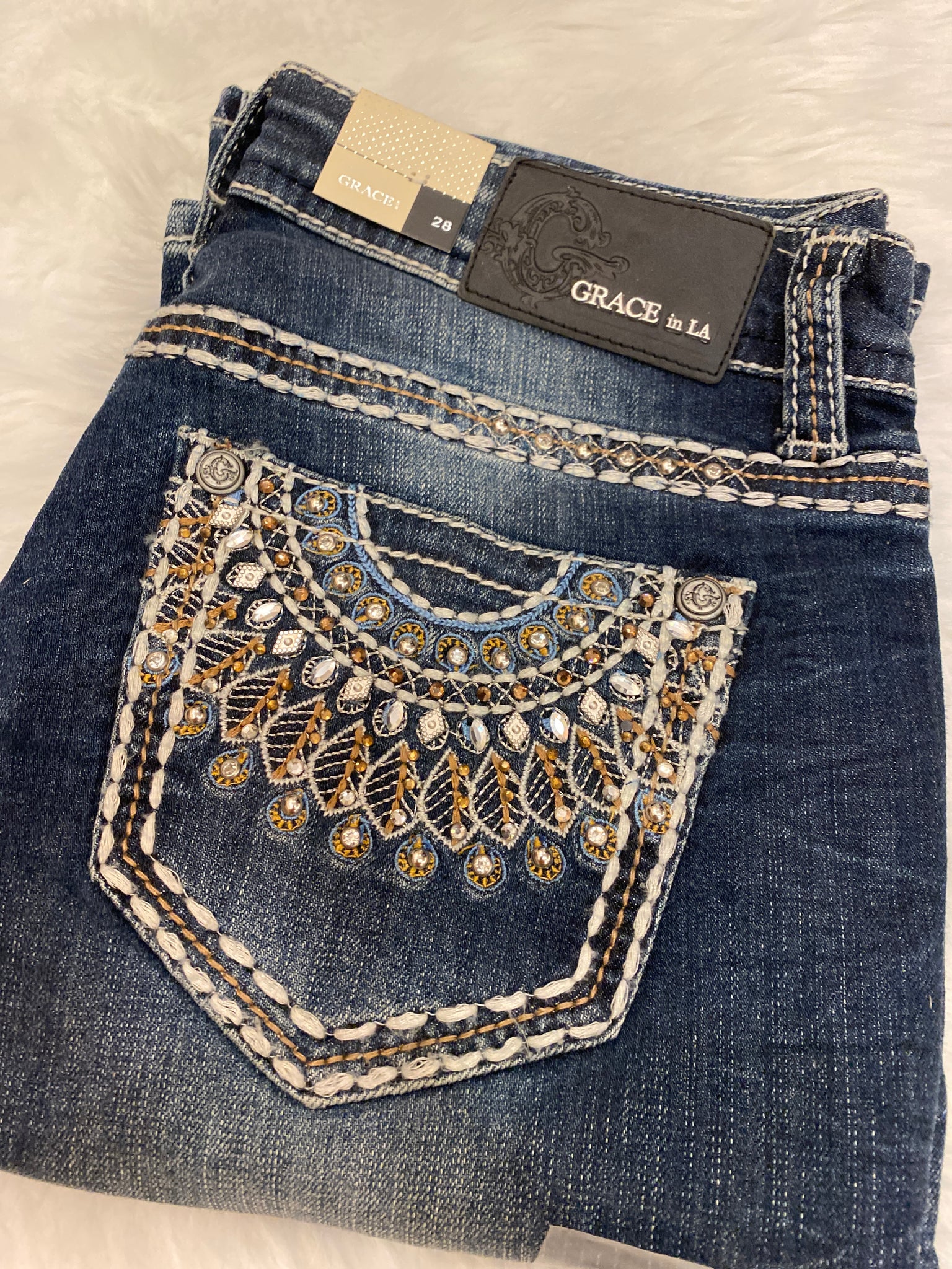GRACE IN L.A ROMAN LEGACY BOOTCUT JEANS – decadence