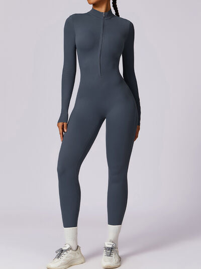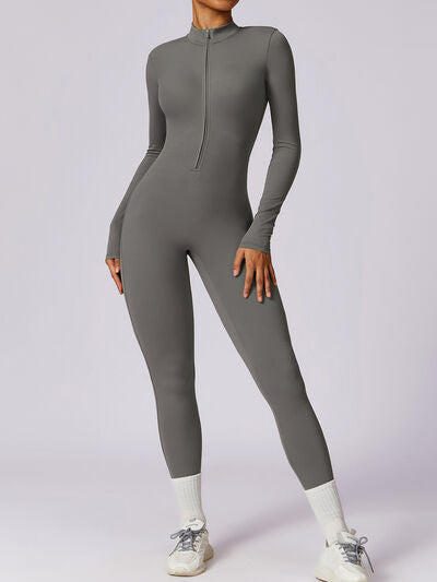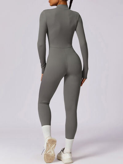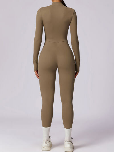 Zip Up Mock Neck Long Sleeve Jumpsuit