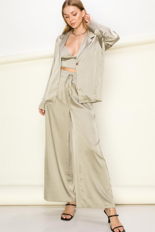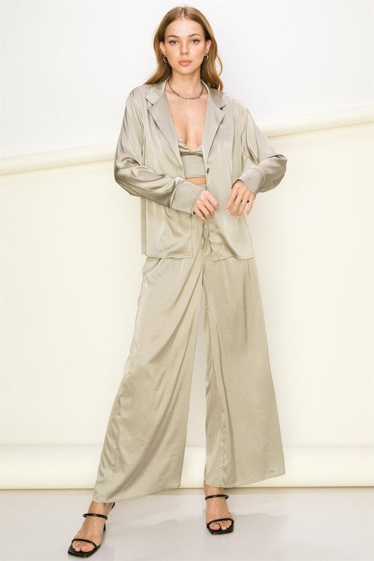 CAN BE PAIRED WITH OPEN-FRONT SHIRT AND WIDE LEG PANTS 95% POLYESTER 5% SPANDEX